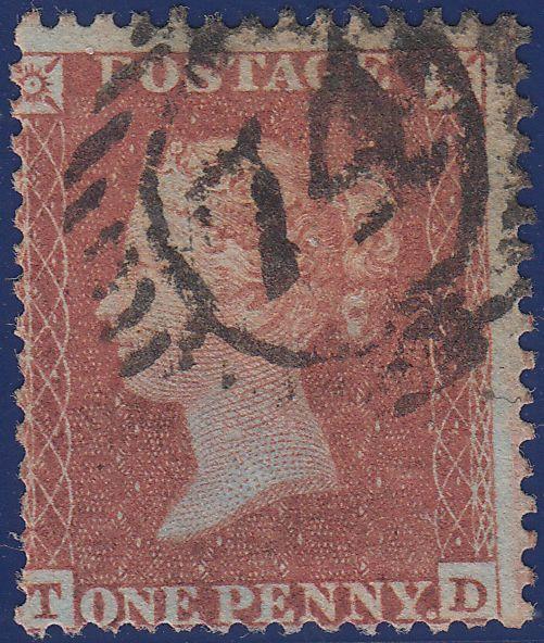 PL.202 (TD) S.C.14 (SG22). Good used 1855 die 1 pl.202 lettered TD S.C.14 (SG22), several short perfs and cancelled London "74" District numeral. (Ref 107350).