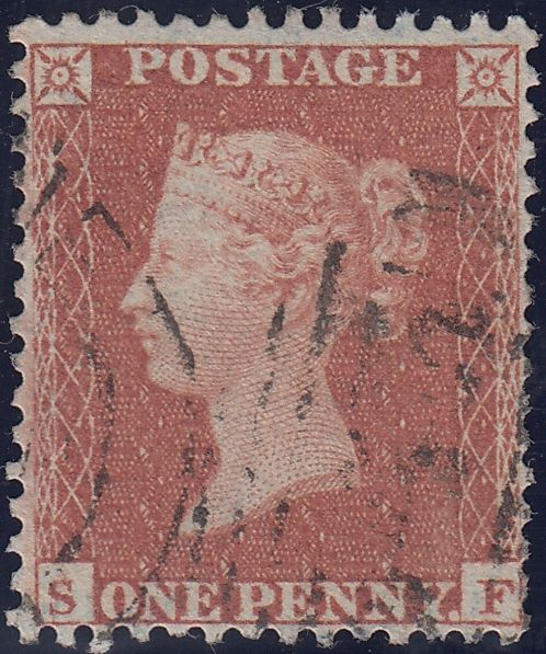 1855 DIE 1 1D RES.PL.1 (SG22)(SF). Good used 1855 die 1 1d Res.pl.1 S.C.14 (SG22) lettered SF, several short perforations at right but fine colour. (Ref 131518).