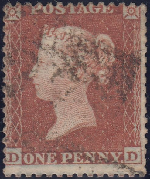 1855 DIE 1 1D RES.PL.1 (SG22)(DD). Good used 1855 die 1 1d Res.pl.1 S.C.14 (SG22) lettered DD, short perforations at right, right 'D' with extended serif. (Ref 131541).
