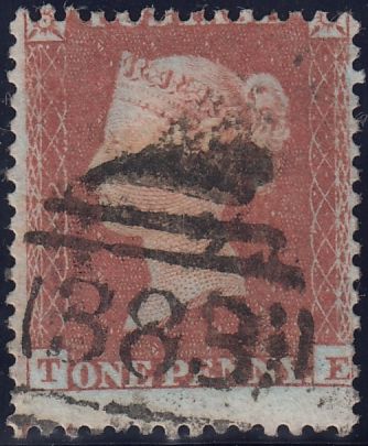1855 DIE 1 1D RES.PL.1 (SG22)(TE). Good used 1855 die 1 1d Res.pl.1 S.C.14 (SG22) lettered TE, centred to top and short perforation at upper right. Cancelled '383' numeral of Hull. (Ref 131544).