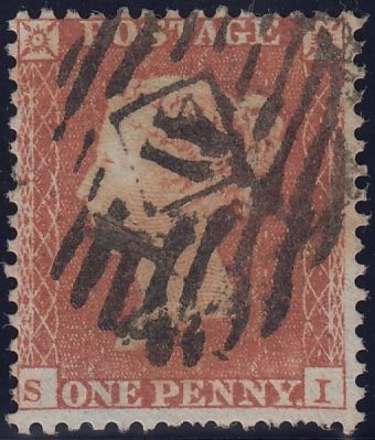 1855 DIE 1 1D RES.PL.2 (SG22)(SI). Good used 1855 die 1 1d Res.pl.2 S.C.14 (SG22) lettered SI, some short perforations, cancelled London '41' Inland Office numeral. (Ref 131546).