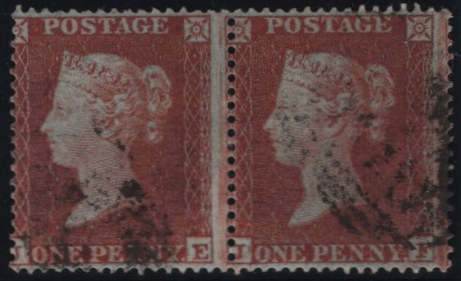 1854 DIE 1 1D PL.200 (SG17) HORIZONTAL PAIR LETTERED IE IF, GOOD USED. Good used horizontal pair 1854 die 1 1d pl.200 S.C.16 (SG17) lettered IE IF, a little off centre and several short perforations at top. (Ref 137938).
