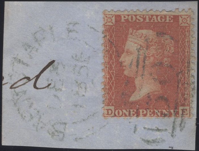 1855 DIE 2 1D PL.7 X 5 PIECES ALL EX DR WIGGINS. Small group of five pieces from 1855 die 2 1d pl.7 L.C.14 (Spec C6) lettered EG LF PH DE and BE, four with 1855/56 date stamps, two are creased. Ex Dr Wiggins collection. Individual retail £50 only available as a group £35. (5 items). (Ref 136835).
