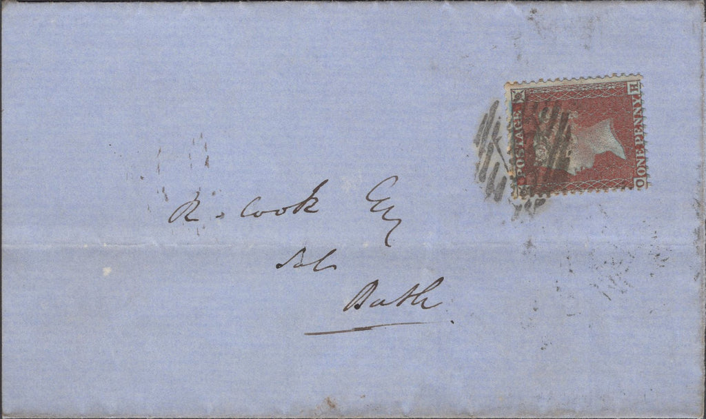 • 137673 1855 PART WRAPPER LONDON TO BATH WITH DIE 2 1D PL.8 (SPEC C6)(OH).