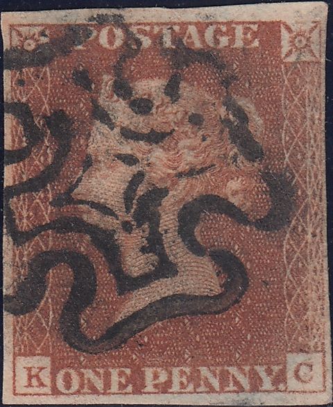 PL.15 (SG8)(KC). Good used 1841 1d pl.15 (SG8) lettered KC with four close to good margins and cancelled fine strike black Maltese cross. Stamp clearly shows NORTH EAST BREAK. (Ref 121009).