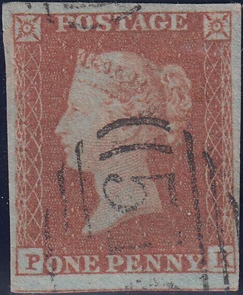 PL.133 (SG8)(PK). Good to fine used 1852 1d pl.133 (SG8) lettered PK, small corner bend but four close to very large margins. (Ref 117975).
