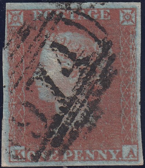 PL.134 (SG8a DEEP RED BROWN ON VERY BLUED PAPER)(KA). Used 1852 1d pl.134 DEEP RED BROWN ON VERY BLUED PAPER (SG8a) lettered KA, thin spot on reverse but fine four margins cancelled '974' of Sedbergh (Yorks). (Ref 118112).