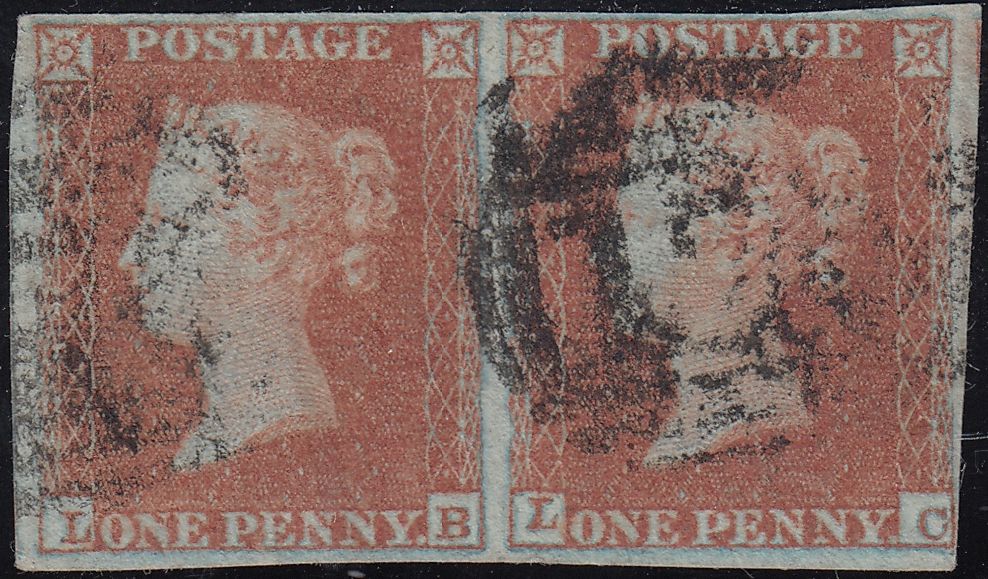 PL.137 (SG8)(LB LC). Used horizontal pair 1852 1d pl.137 (SG8) lettered LB LC, LB vertical bend, pair with four close to good margins. (Ref 119028).