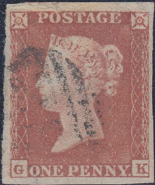 PL.160 (GK) VERY THIN PAPER (SG8). Good used 1852 1d pl.160 (SG8) lettered GK, fine four margins, corner bend and printed on VERY THIN PAPER. (Ref 114322).