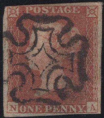 1841 1D PL.20 (SG8)(NA RE-ENTRY SPEC BS9a). Good to fine used 1841 1d pl.20 (SG8) lettered NA with four close but clear to fine margins and cancelled very fine strike black Maltese cross. Stamp shows RE-ENTRY MARKS UPPER SQUARES AND POSTAGE (Spec BS9a). (Ref 135274).