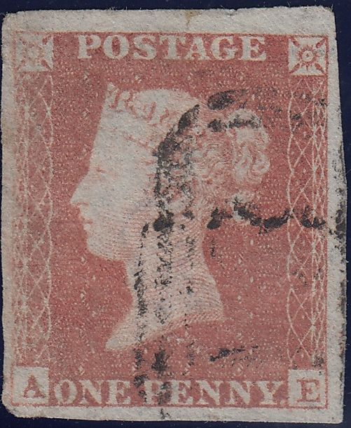 PL.170 (AE)(SG8)/VERY THIN PAPER. Good to fine used 1853 1d pl.170 (SG8) lettered AE with four close to very large margins and cancellation clear of Queen's profile. Corner bend, printed on VERY THIN PAPER. (Ref 116348).