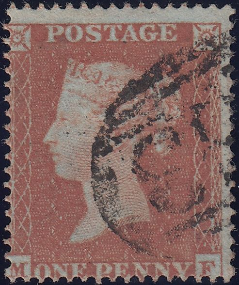 PL.166 (SG17)(MF). Good used 1854 1d pl.166 S.C.16 (SG17) lettered MF, centred low but good perforations and cancellation clear of Queen's profile. (Ref 120651).