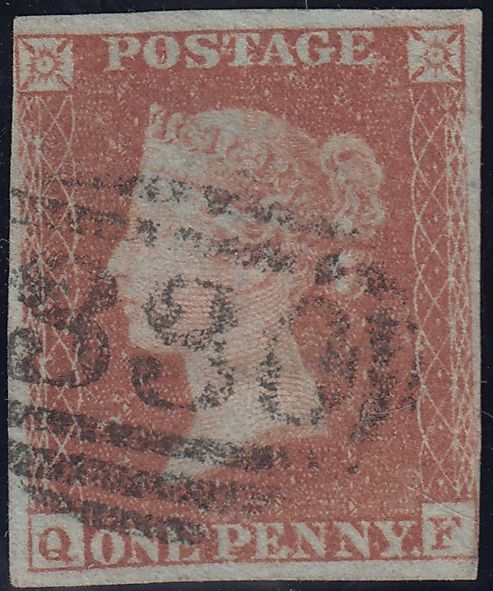 1853 1D PL.166 (SG8)(QF). Used 1853 1d pl.166 (SG8) lettered QF, just touched at lower right otherwise good margins. (Ref 132409).