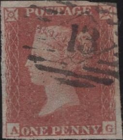 PL.167 (AG) MATCHED PAIR 1D IMPERF (SG8) AND 1D PERF S.C.16 (SG17). Both fine to very fine used examples with London cancellations, the 1d imperf with good to fine four margins.  (Ref 83983).