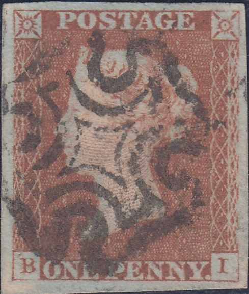 PL.25 (BI)(SG8). Fine used 1842 1d pl.25 (SG8) lettered BI, fine four margins and cancelled fine black Maltese cross. (Ref 113588).