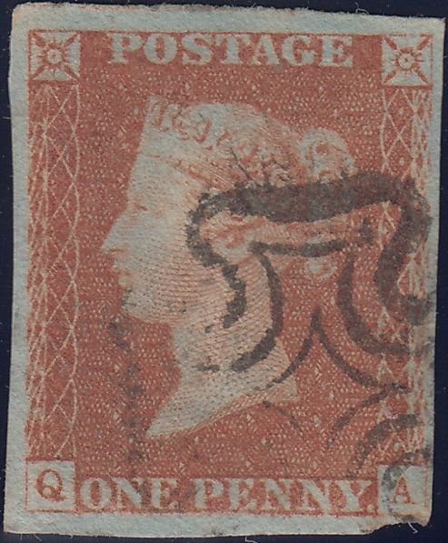 PL.25 (SG8)(QA). Good to fine used 1842 1d pl.25 (SG8) lettered QA with four close to very large margins cancelled fine strike black Maltese cross. (Ref 121047).