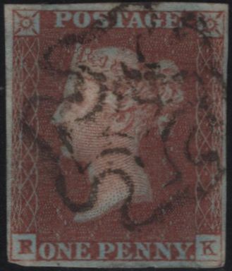 1842 1D PL.30 (SG8)(RK CONSTANT VARIETY 'P CONVERTED TO R' (SPEC BS19d). FINE USED. Fine used 1842 1d pl.30 (SG8) lettered RK, four close to fine margins, Maltese Cross clear of excellent constant variety 'P CONVERTED TO R' (Spec BS19d). (Ref 142134).