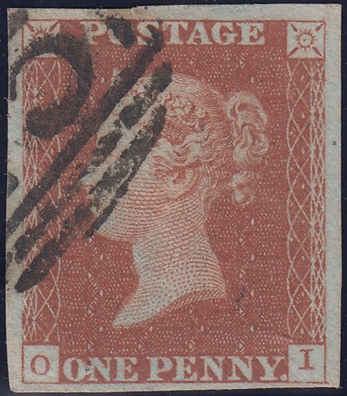 PL.44 (SG8)(OI). Good to fine used 1844 1d pl.44 (SG8) lettered OI with four close to fine margins, minor corner bend. (Ref 120361).