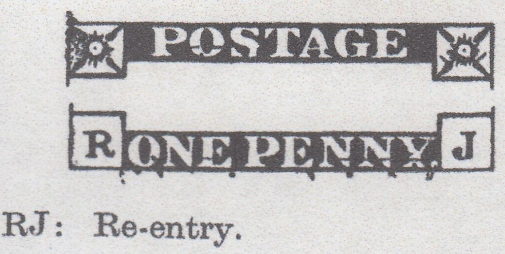 PL.66 (SG8)(RJ MAJOR RE-ENTRY SPEC BS28b). Good used 1846 1d pl.66 (SG8) lettered RJ, touched at lower right and thinned on reverse but showing EXCELLENT RE-ENTRY MARKS IN UPPER SQUARES, POSTAGE AND VALUE. (Ref 119186).