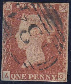1846 1d pl.69 (AG)(SG 8). Good used with four close margins, cancelled '134' of Bristol. (Ref 66803).