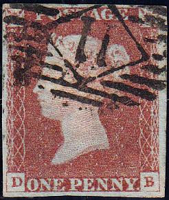 PL.70 (DB)(SG8). Good to fine used 1846 1d pl.70 lettered DB with four margins cancelled London "11" Inland Office numeral.  (Ref 92132).