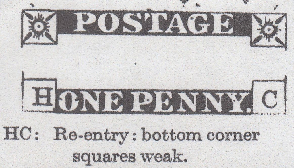 PL.81 (SG8)(HC RE-ENTRY SPEC BS29c). Used 1858 1d pl.81 (SG8) lettered HC, just touched upper left otherwise good margins and showing RE-ENTRY MARKS IN POSTAGE UPPER SQUARES AND VALUE (spec BS29c). (Ref 119327).