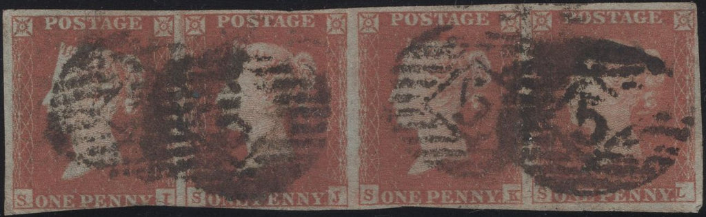 • 135912 1850 1D PL.96 (SG8) HORIZONTAL STRIP OF FOUR LETTERED SI SJ SK SL.