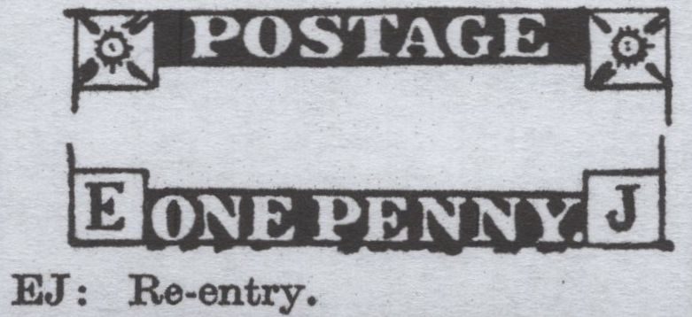 1850 1D PL.95 (SG8)(EJ MAJOR RE-ENTRY SPEC BS81a) FINE USED. Fine used 1850 1d pl.95 (SG8) lettered EJ, four fine margins and showing RE-ENTRY MARKS UPPER SQUARES, POSTAGE, VALUE AND LOWER MARGIN. (Ref 138790).