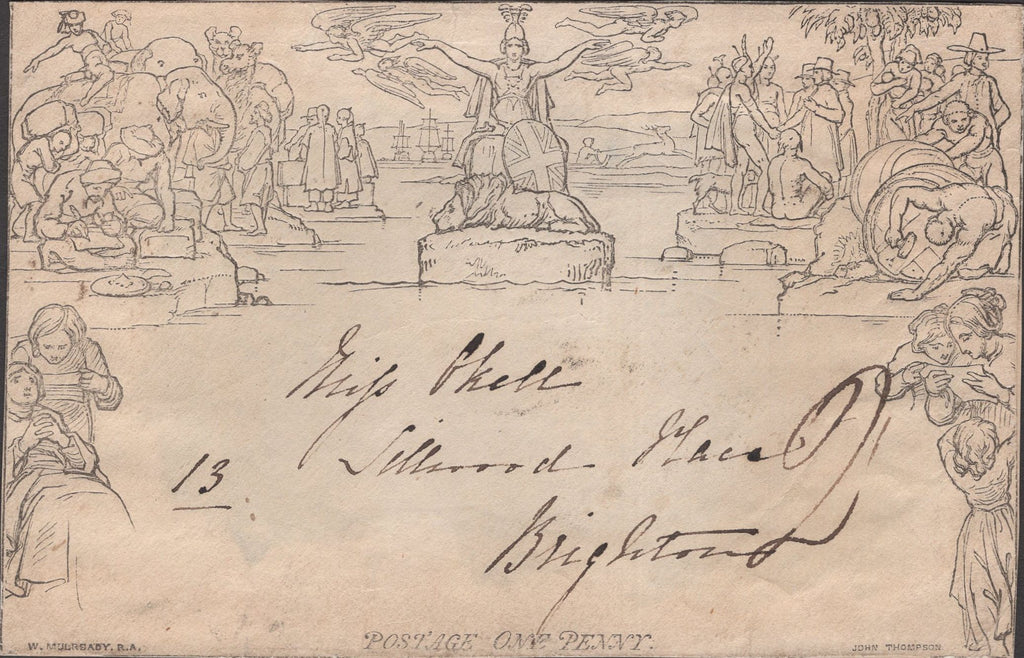 • 141343 CIRCA 1840-41 1D MULREADY FRONT TO BRIGHTON, POSTED UNPAID, BRITANNIA UNCANCELLED AND CHARGED '2'.