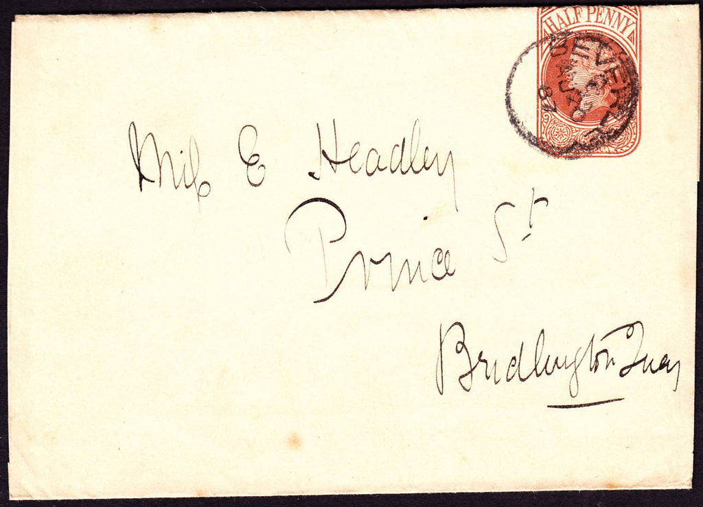 1887 YORKSHIRE/BEVERLEY CDS ON WRAPPER. Fine used QV ½d brown newspaper wrapper Beverley to Bridlington Quay cancelled solely by BEVERLEY cds AU 20 87. (Ref 77179).