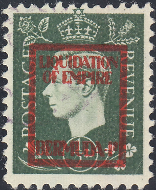 GERMAN PROPAGANDA FORGERY/BERMUDA-IS. A very fine 'used' example of the KGVI ½d value (SG462) overprinted 'LIQUIDATION OF EMPIRE/BERMUDA-IS' in red, very light cancellation. (Ref 88408).
