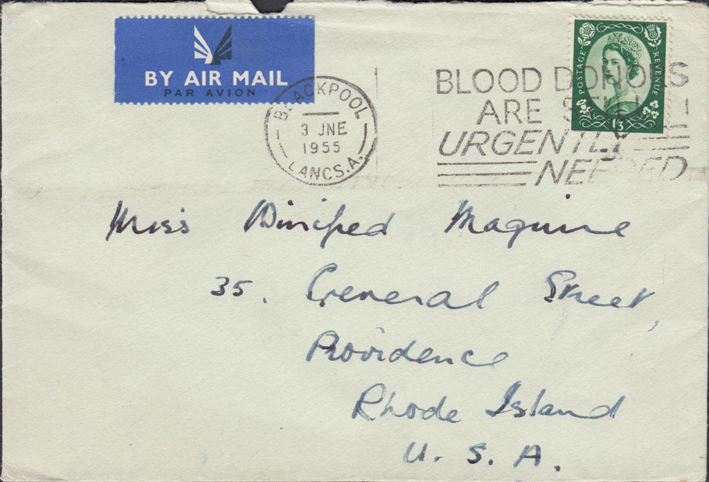 • 118302 1955 MAIL BLACKPOOL TO USA.