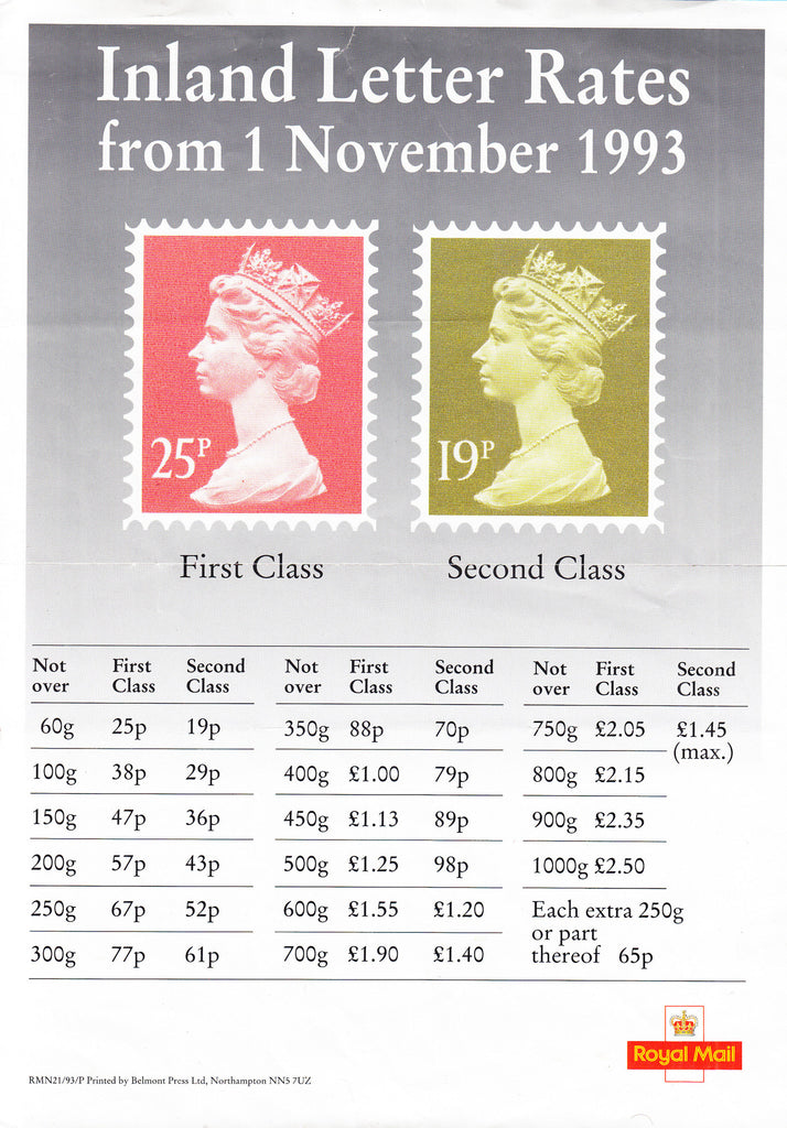 1993 POST OFFICE NOTICE REGARDING INLAND LETTER RATED. Fine Post Office information notice (210x298) regarding "Inland Letter Rates from 1 November 1993". Horizontal crease as expected. (Ref 91791).