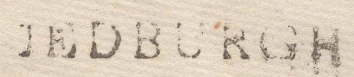 1804 MAIL JEDBURGH TO EDINBURGH WITH 'JEDBURGH' STRAIGHT LINE HAND STAMP. Fine wrapper from Jedburgh to 'Thomas Cranstoun Esq, Writer to Signet, Edinburgh', charged '7' and on front Edinburgh date stamp 'MR 1804 14'. On reverse fine strike 'JEDBURGH' straight line hand stamp in black. (Ref 139549).