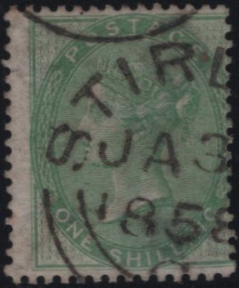 1856 1S GREEN (SG 72) FINE TO VERY FINE USED. Fine to very fine used 1856 1s green (SG 72), centred to right but fine colour and cancelled neat part strike 'STIRLING' date stamp. (Ref 141864).