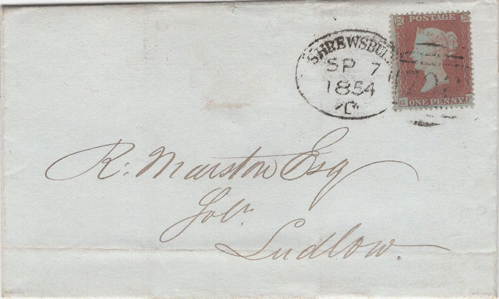 • 130016 1854 MAIL SHREWSBURY TO LUDLOW WITH 1D (SG17) 'SHREWSBURY/708' TYPE A SPOON (RA116).