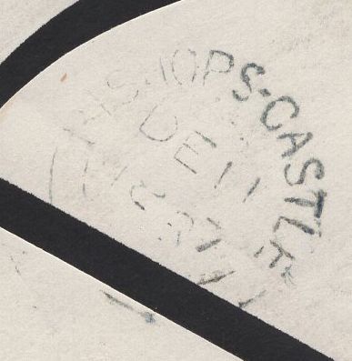 • 130021 1857 MOURNING ENVELOPE SHREWSBURY TO BISHOPS CASTLE WITH 'SHREWSBURY/708' SPOON TYPE C2 (RA119).