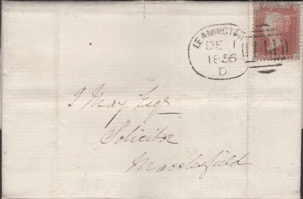 • 141463 1856 MAIL LEAMINGTON TO MACCLESFIELD, 1D (SG29) 'LEAMINGTON/444' SPOON CANCELLATION (RA46).