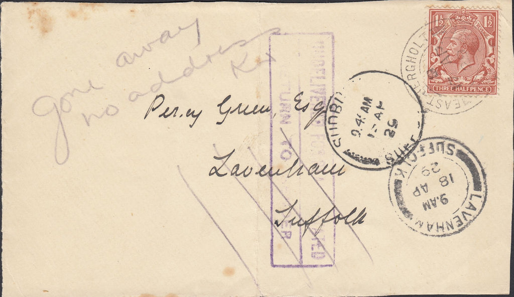 LAVENHAM CANCELLATIONS (SUFFOLK). Fine lot of 12 post cards and 2 other items 1902-1948 all with LAVENHAM cancellations including underpaid mail, LNER parcel stamp etc. (Ref 118343).