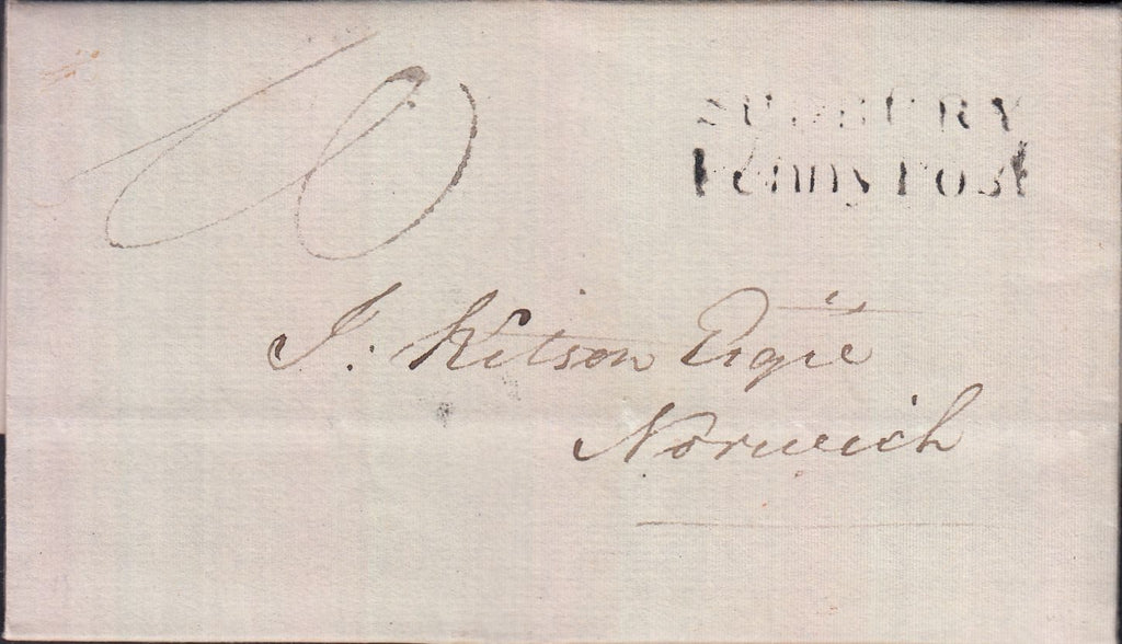 • 129141 1830 MAIL LAVENHAM, SUFFOLK TO NORWICH WITH 'SUDBURY/PENNY POST' HAND STAMP (SK353).