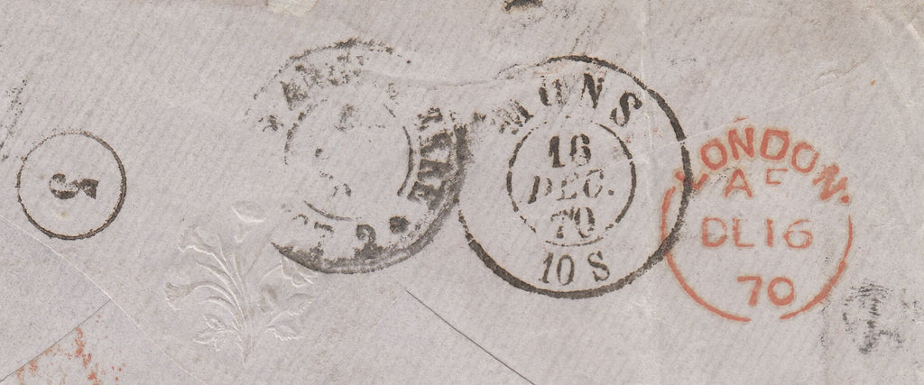 • 142720 1870 MAIL HEREFORD TO MONS, BELGIUM 4D VERMILION (SG94).
