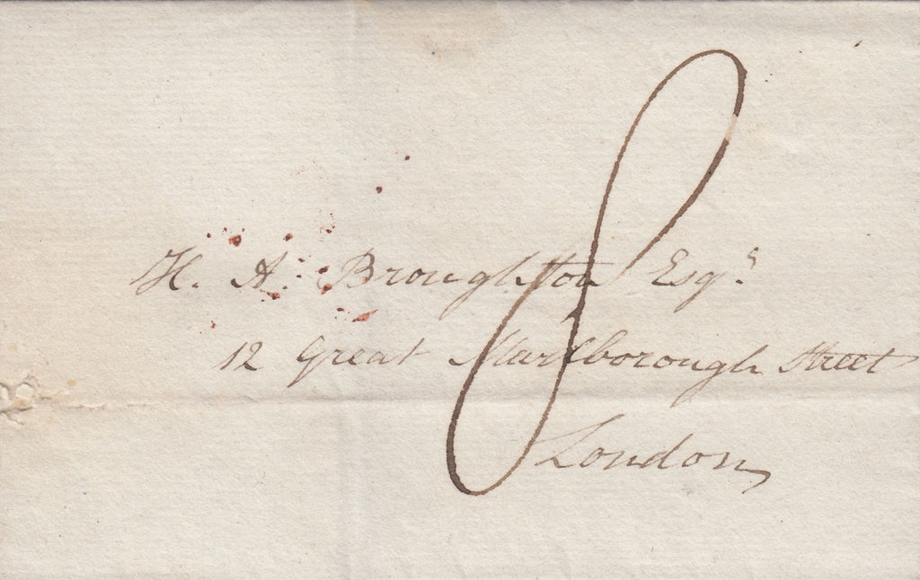 1825 SUSSEX/"MIDHURST 51" MILEAGE MARK IN GREEN (SX893). Wrapper Midhurst to London, charged "8", on reverse fair strike "MIDHURST/51" mileage mark in green (SX893). London date stamp 24 MY 1825. (Ref 115190).