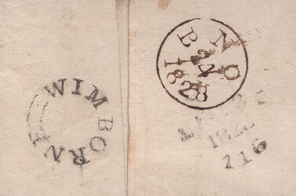 • 141339 1828 FREE MAIL TO LONDON REDIRECTED TO WIMBORNE AND PETWORTH WITH 'WIMBORNE' UDC (DT722).