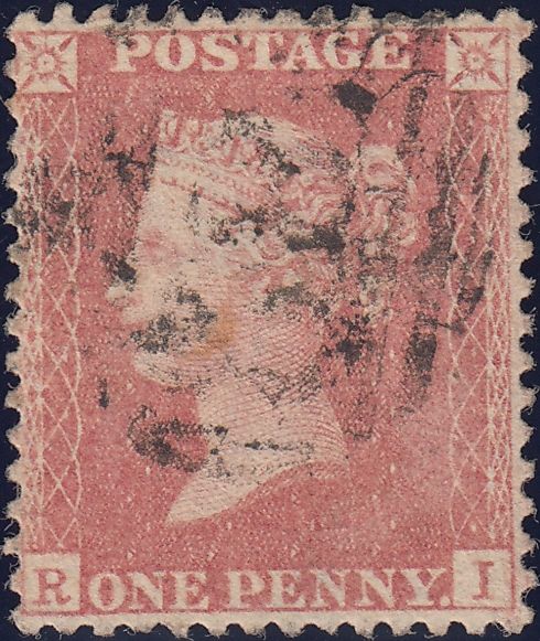 1857 1D PL.27 PALE ROSE ON TRANSITIONAL PAPER (SPEC C9(4)(RI). Good used 1857 die 2 1d pl.27 pale rose on transitional paper (spec C9(4) lettered RI, cancellation a little blurred but FINE TRANSITIONAL SHADE. (Ref 120530).