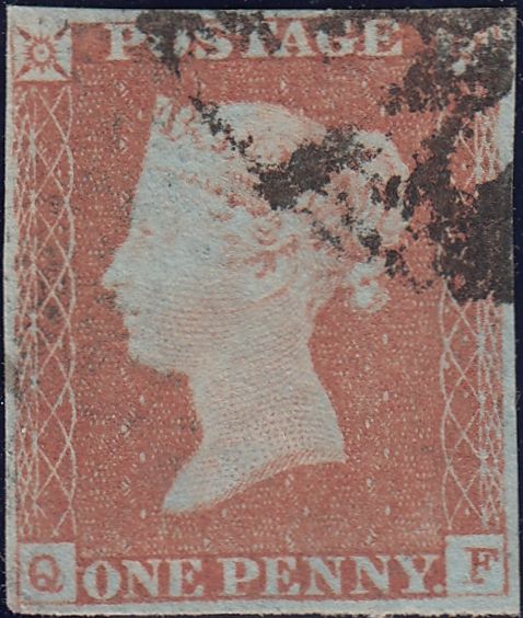 PL.77(QF)(SG8). Good used 1847 1d pl.77 lettered QF, small thin spot but four margins and cancelled clear of Queen's profile. (Ref112696).