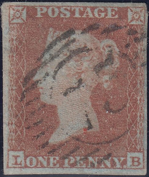 PL.133 (SG8)(LB). Used 1852 1d pl.133 (SG8) lettered LB, pin hole but four close to fine four margins, London cancellation. (Ref 117976).
