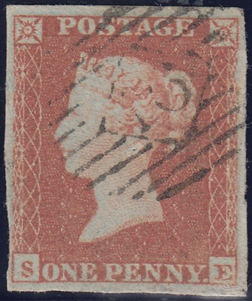 PL.138 (SG8)(SE). Used 1852 1d pl.138 (SG8) lettered SE, pin hole but four close to good margins, London cancellation. (Ref 119061).