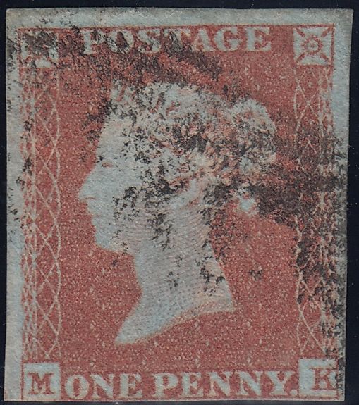 1852 1D PL.133 (SG8)(MK). Used 1852 1d pl.133 (SG8) lettered MK, touched at foot otherwise good margins. (Ref 132414).