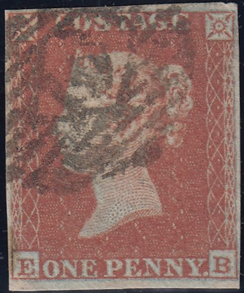 1852 1D PL.133 (SG8)(EB). Good to fine used 1852 1d pl.133 (SG8) lettered EB with four very close but clear to good margins, London cancellation. (Ref 132415).