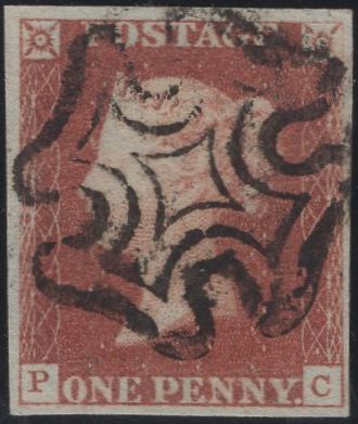 1841 1D RED PL.8 (SG7)(PC). Fine to very fine used 1841 1d red pl.8 (SG7) lettered PC with four close to fine margins and cancelled neat strike black Maltese cross. (Ref 135194).